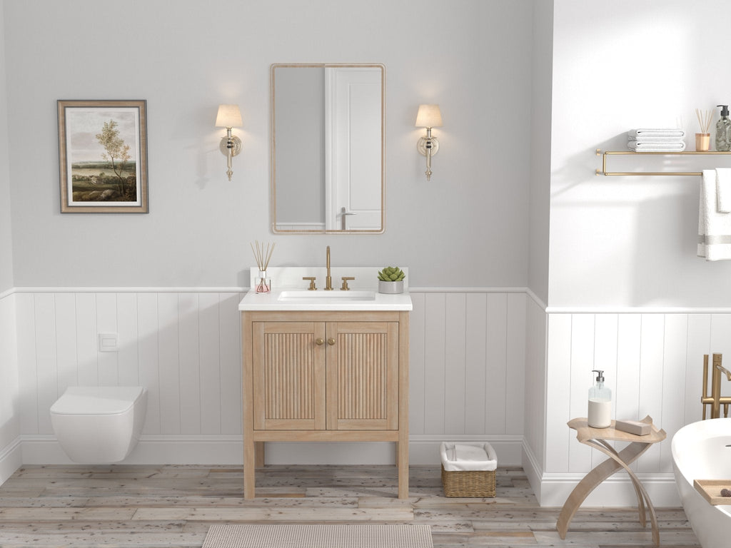 - Texture Meets Simplicity: The fluted door design introduces a subtle yet striking texture, creating depth and character for your bathroom.
