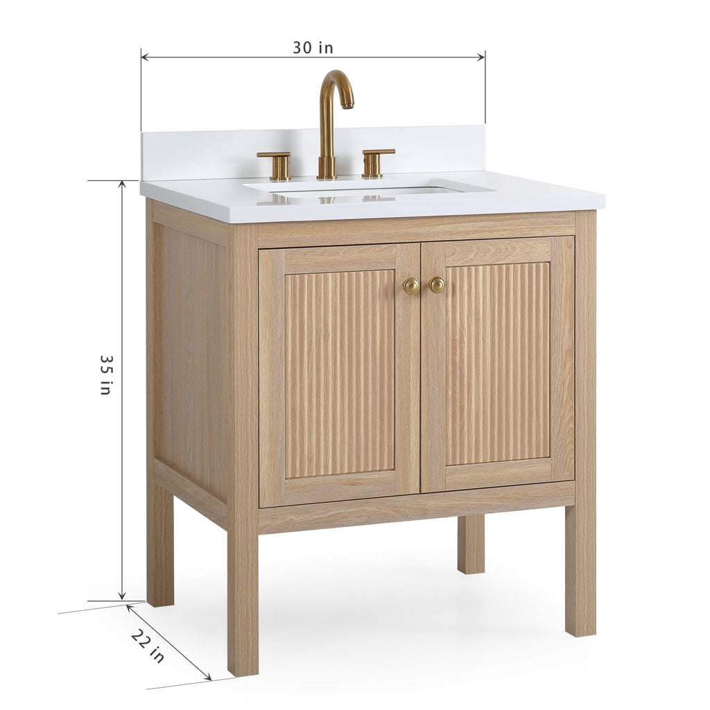 Step into a space of effortless refinement with the 30-Inch Sera Bathroom Vanity, where craftsmanship meets artistry. This thoughtfully designed vanity features a fluted door design, offering a dynamic blend of texture and sophistication that’s as visually stunning as it is functional. The light oak finish accentuates the natural wood grain, creating a warm and inviting aesthetic perfect for any modern or transitional bathroom.