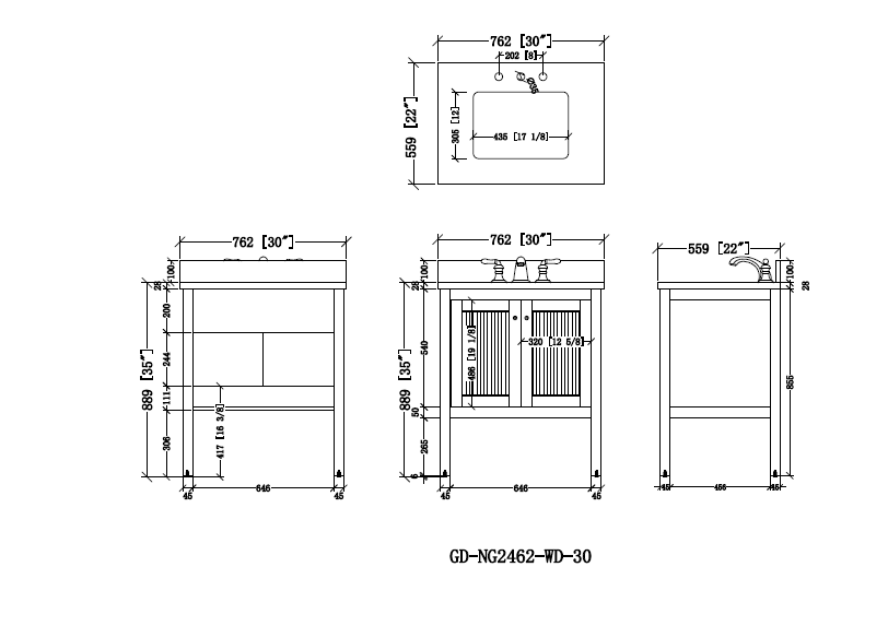 Product Dimension: 30 "W x 22"D x 35"H (Inc. Counter top)