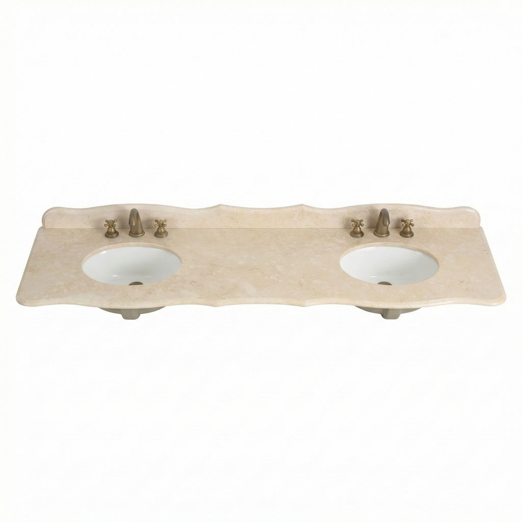 72 inch Cream Marble Stone Top With Double Sink | 72 x 22'' D